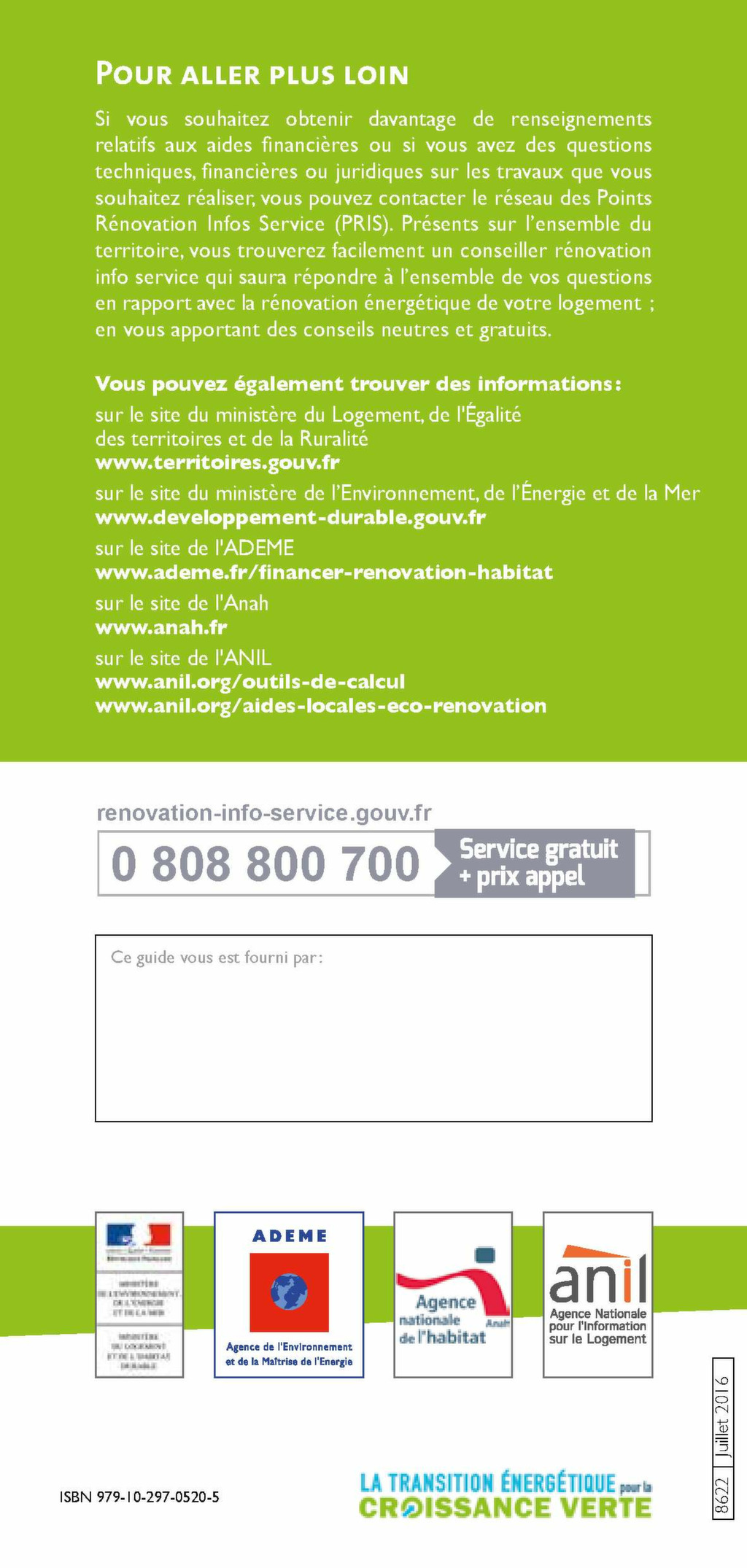 Aides ifnancières 2016 Pour des travaux de rénovation énergétique des logements existants Édition : juillet 2016